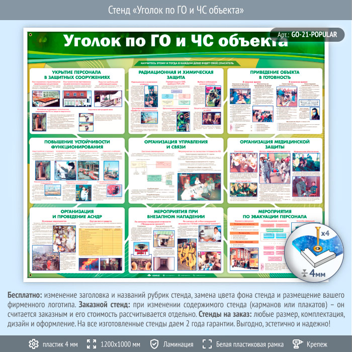 Стенд «Уголок по ГО и ЧС объекта» (GO-21-POPULAR) в Томске купить