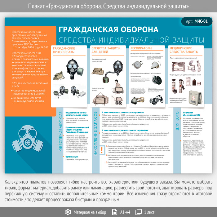 Плакат «Гражданская оборона. Средства индивидуальной защиты» (МЧС-01, 1 лист) в Томске купить