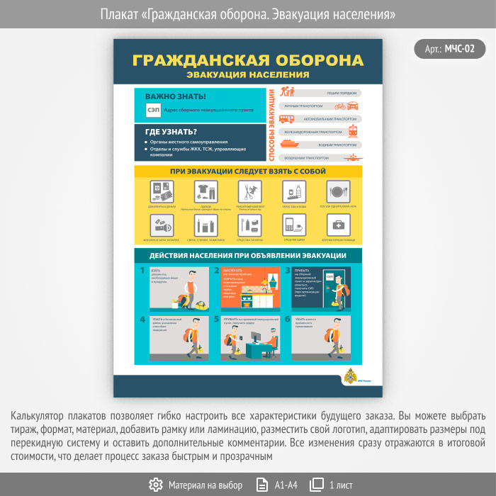 Плакат «Гражданская оборона. Эвакуация населения» (МЧС-02, 1 лист) в Томске купить