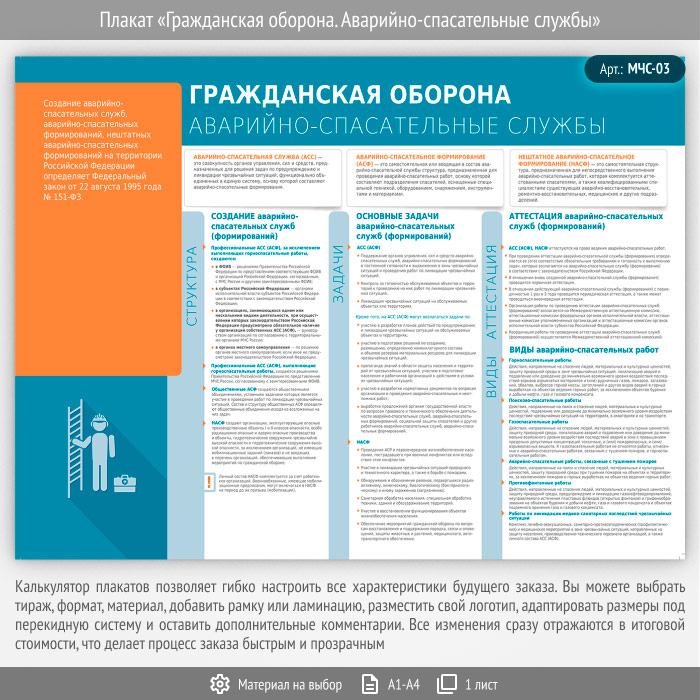 Плакат «Гражданская оборона. Аварийно-спасательные службы» (МЧС-03, 1 лист) в Томске купить