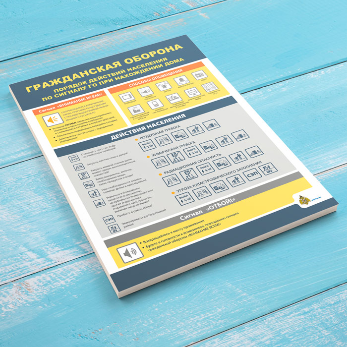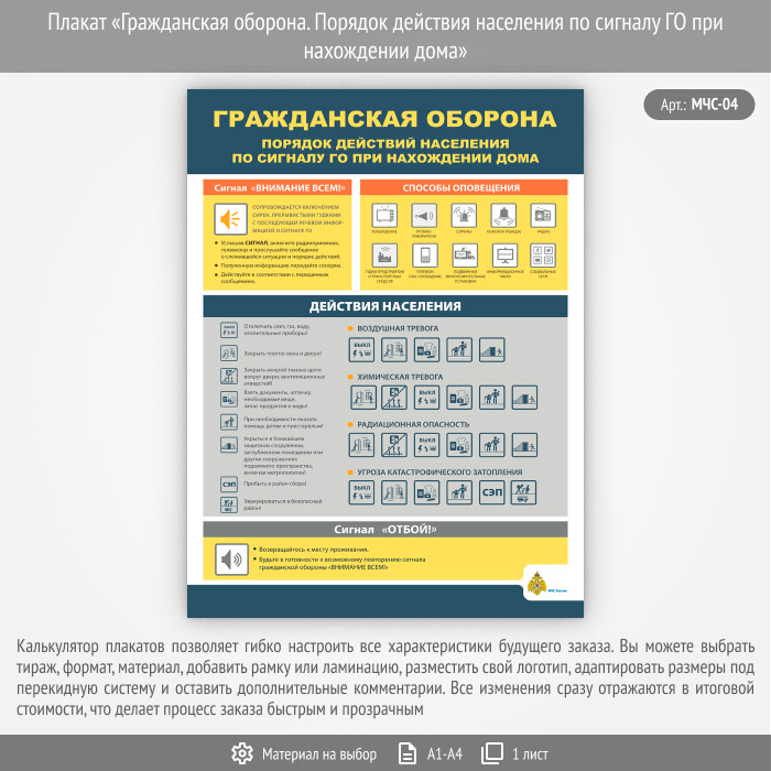 Плакат «Гражданская оборона. Порядок действия населения по сигналу ГО при нахождении дома» (МЧС-04, 1 лист) в Томске купить