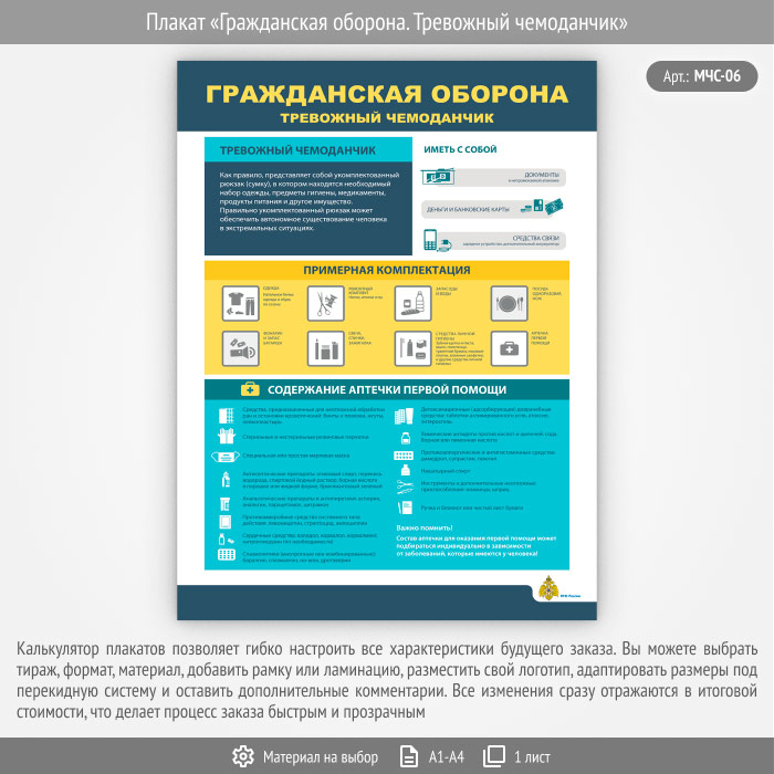 Плакат «Гражданская оборона. Тревожный чемоданчик» (МЧС-06, 1 лист) в Томске купить