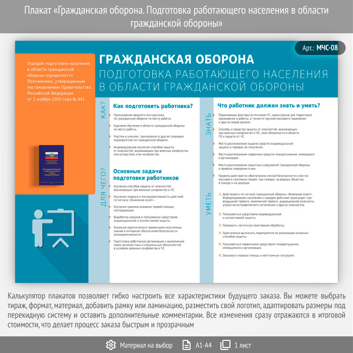 Плакат «Гражданская оборона. Подготовка работающего населения в области гражданской обороны» (МЧС-08, 1 лист) в Томске купить