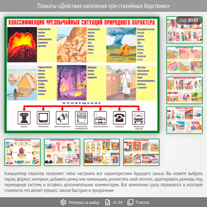 Плакаты «Действия населения при стихийных бедствиях» (ВЗ-02, 9 листов) в Томске купить