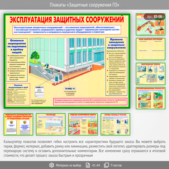 Плакаты «Защитные сооружения ГО» (ВЗ-08, 9 листов) в Томске купить