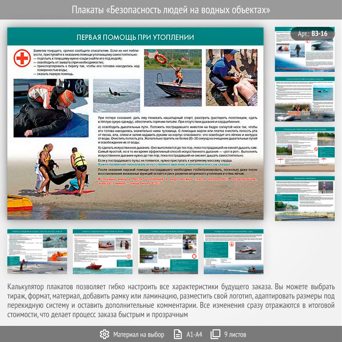Плакаты «Безопасность людей на водных объектах» (ВЗ-16, 9 листов) в Томске купить