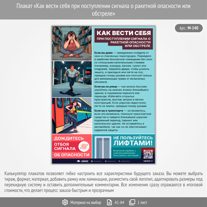 Плакат «Как вести себя при поступлении сигнала о ракетной опасности или обстреле» с QR (М-140, 1 лист) в Томске купить