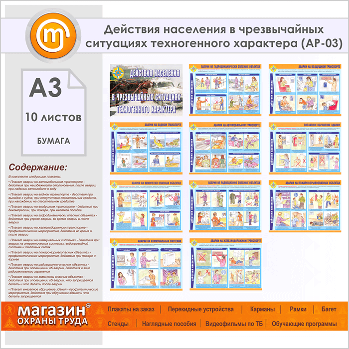 Плакаты «Действия населения в чрезвычайных ситуациях техногенного характера» (АР-03, бумага, А3, 10 листов) в Томске купить