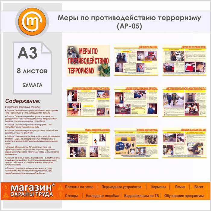 Плакаты «Меры по противодействию терроризму» (АР-05, бумага, А3, 8 листов) в Томске купить