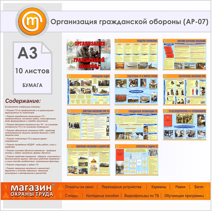 Плакаты «Организация гражданской обороны» (АР-07, бумага, А3, 10 листов) в Томске купить