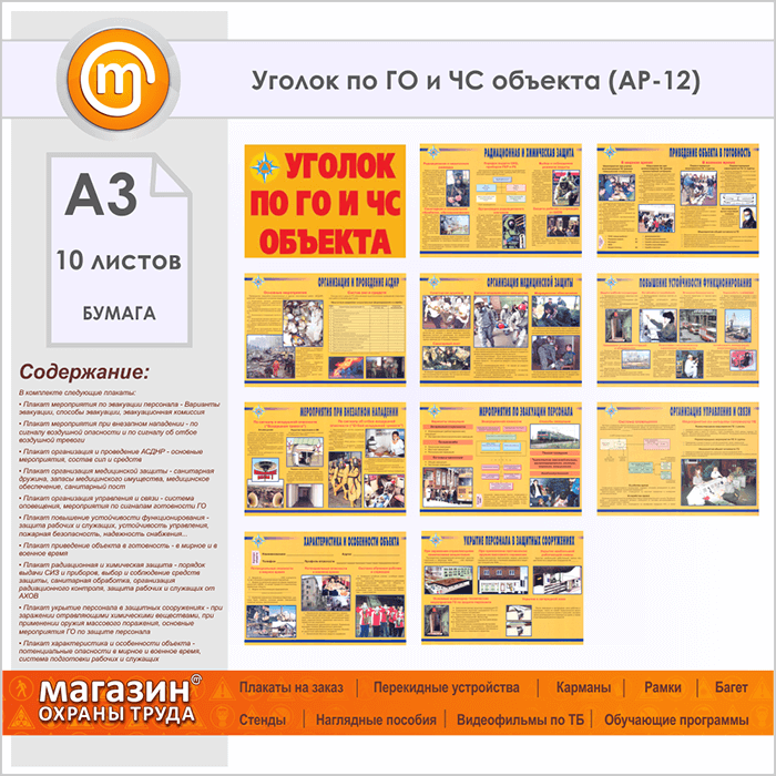 Плакаты «Уголок по ГО и ЧС объекта» (АР-12, бумага, А3, 10 листов) в Томске купить