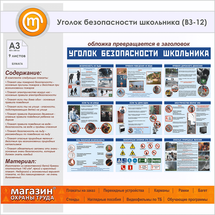 Плакаты «Уголок безопасности школьника» (ВЗ-12, бумага, А3, 10 листов) в Томске купить