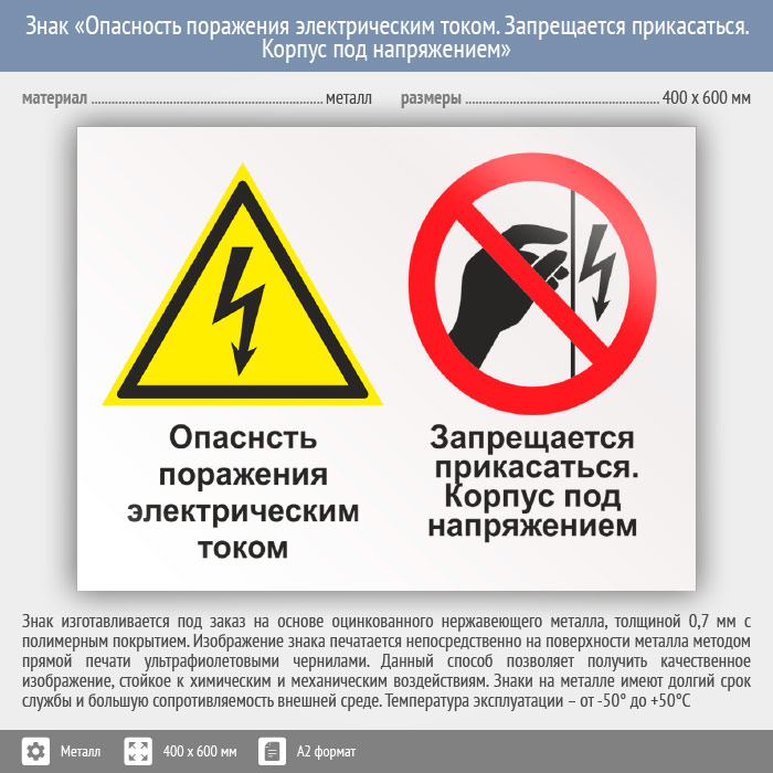 Знак «Опасность поражения электрическим током. Запрещается прикасаться. Корпус под напряжением», КЗ-47 (металл, 600х400 мм) в Томске купить