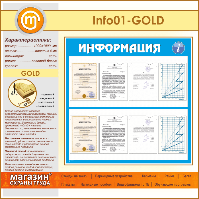 Стенд «Информация» с 8 карманами А4 формата (IN-01-GOLD) в Томске купить