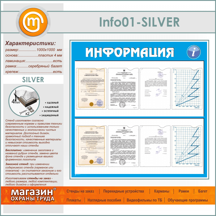 Стенд «Информация» с 8 карманами А4 формата (IN-01-SILVER) в Томске купить