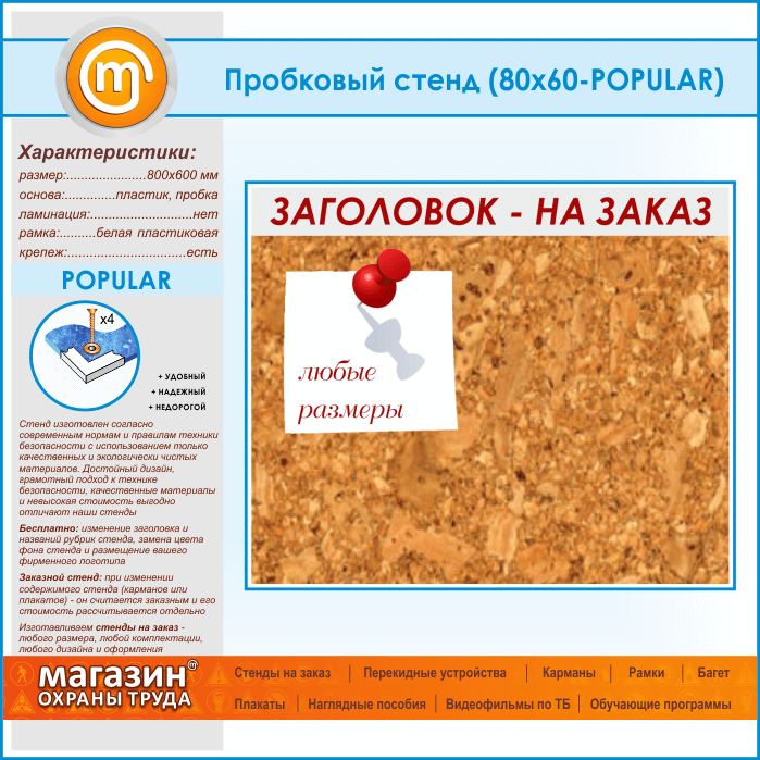 Пробковая доска с заголовком, 80х60 см (IN-06-POPULAR) в Томске купить
