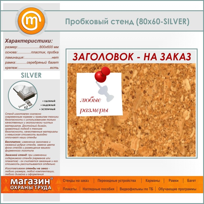 Пробковая доска с заголовком, 80х60 см (IN-06-SILVER) в Томске купить