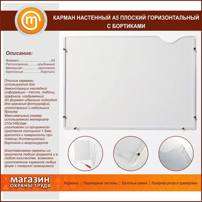 Карман настенный А5 плоский горизонтальный с бортиками в Томске купить