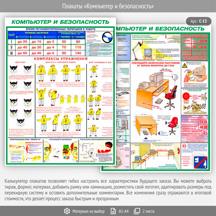 Плакаты «Компьютер и безопасность» (С-15, 2 листа) в Томске купить