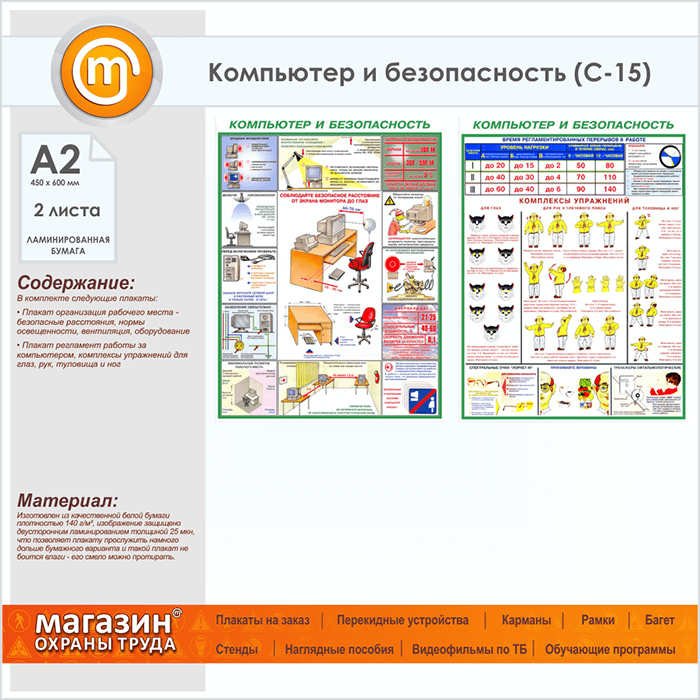 Плакаты «Компьютер и безопасность» (С-15, ламинированная бумага, А2, 2 листа) в Томске купить