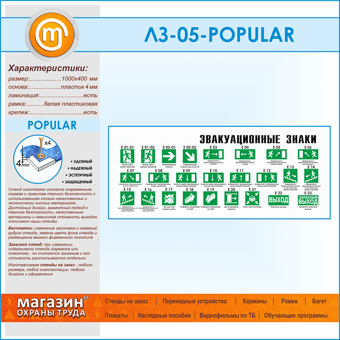 Стенд «Эвакуационные знаки» (LZ-05-POPULAR) в Томске купить