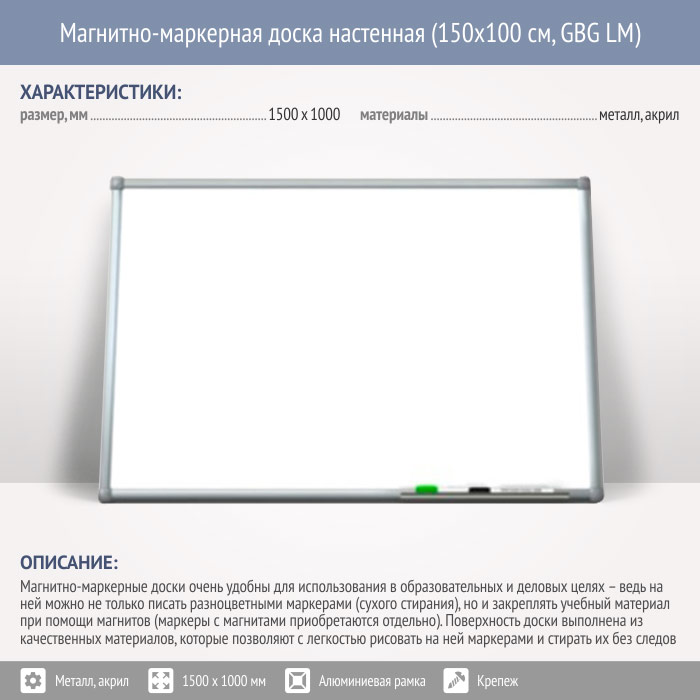 Магнитно-маркерная доска настенная (150x100 см, GBG LM) в Томске купить