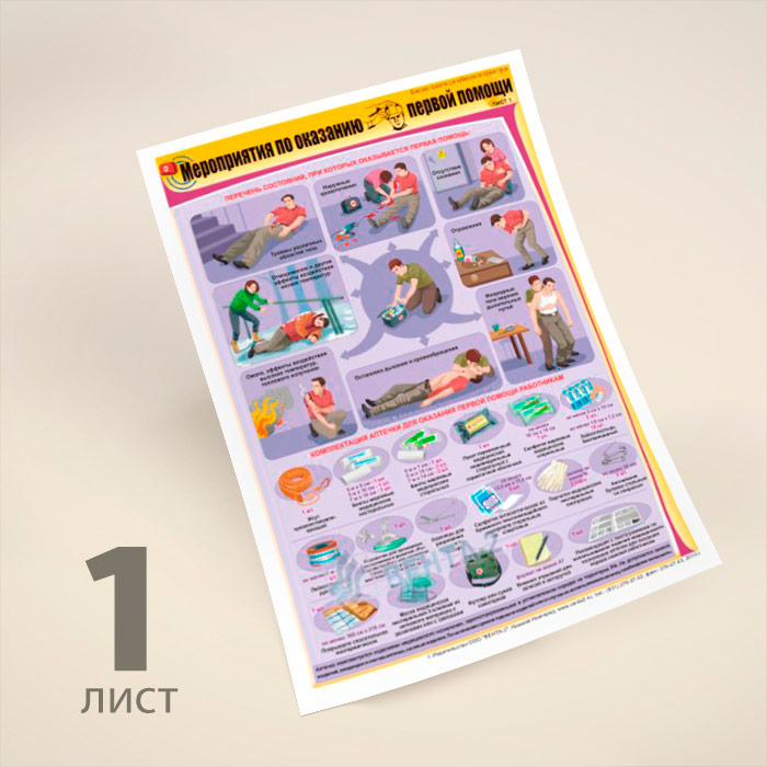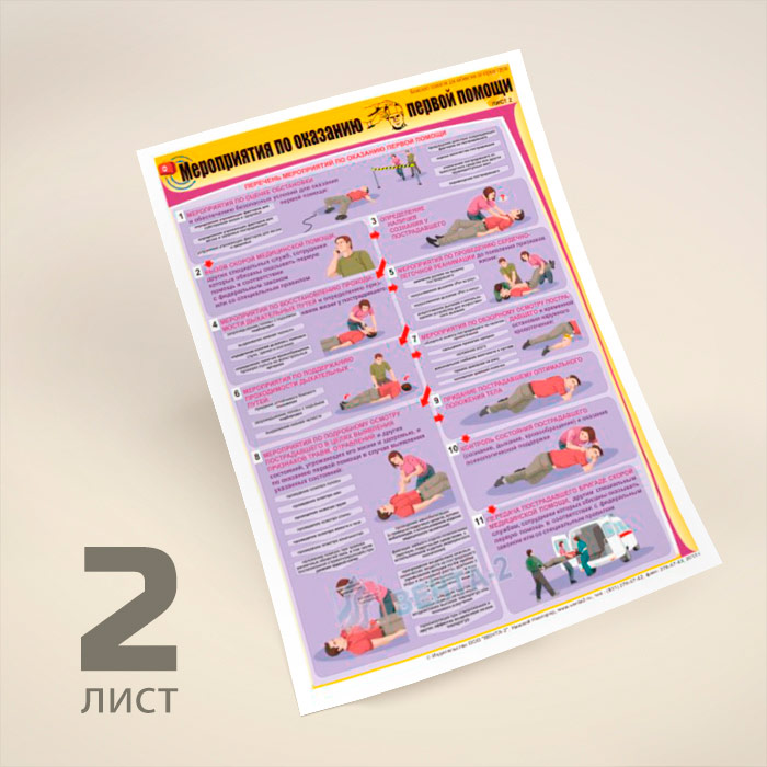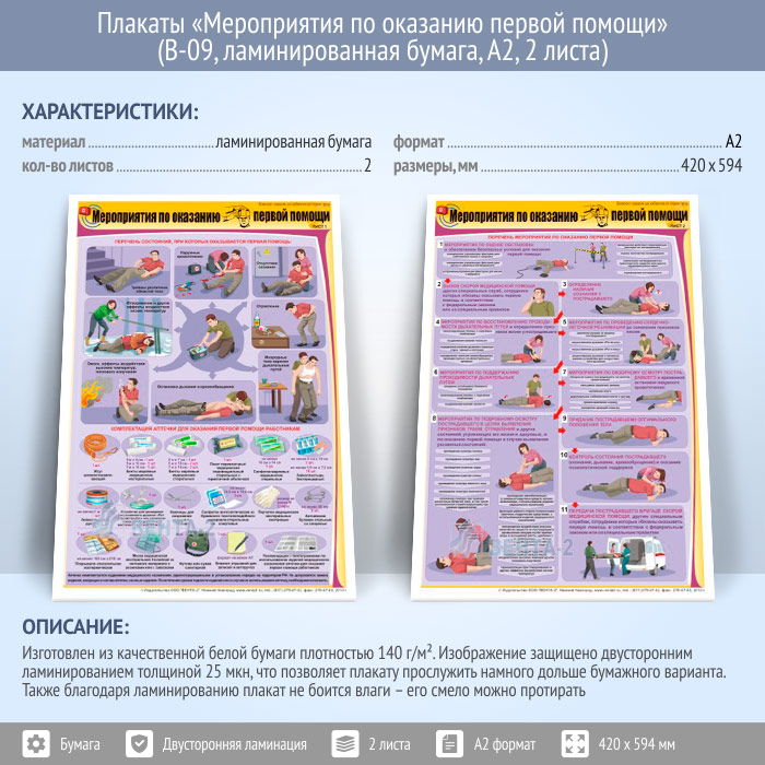 Плакаты «Мероприятия по оказанию первой помощи» (В-09, ламинированная бумага, А2, 2 листа) в Томске купить