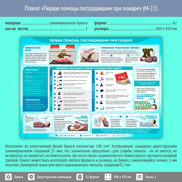 Плакат «Первая помощь пострадавшим при пожаре» (М-22, ламинированная бумага, А2, 1 лист) в Томске купить
