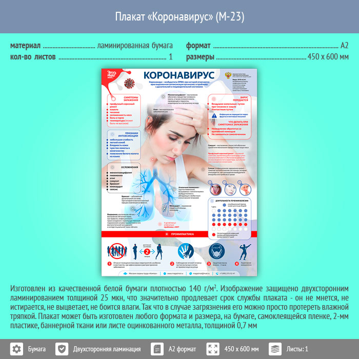 Плакат «Коронавирус» (М-23, ламинированная бумага, А2, 1 лист) в Томске купить