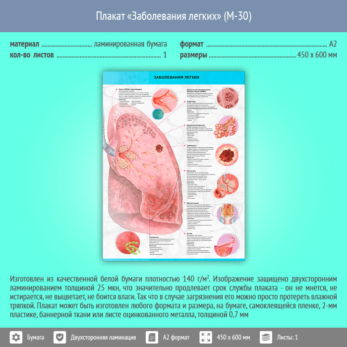 Плакат «Заболевания легких» (М-30, ламинированная бумага, А2, 1 лист) в Томске купить