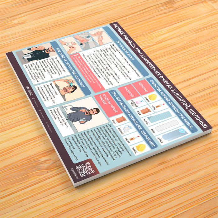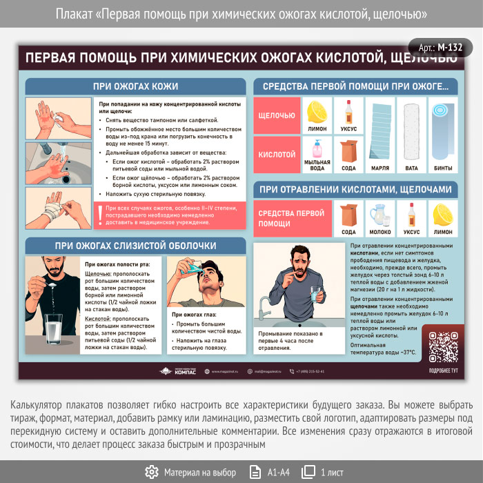 Плакат «Первая помощь при химических ожогах кислотой, щелочью» с QR (М-132, 1 лист) в Томске купить