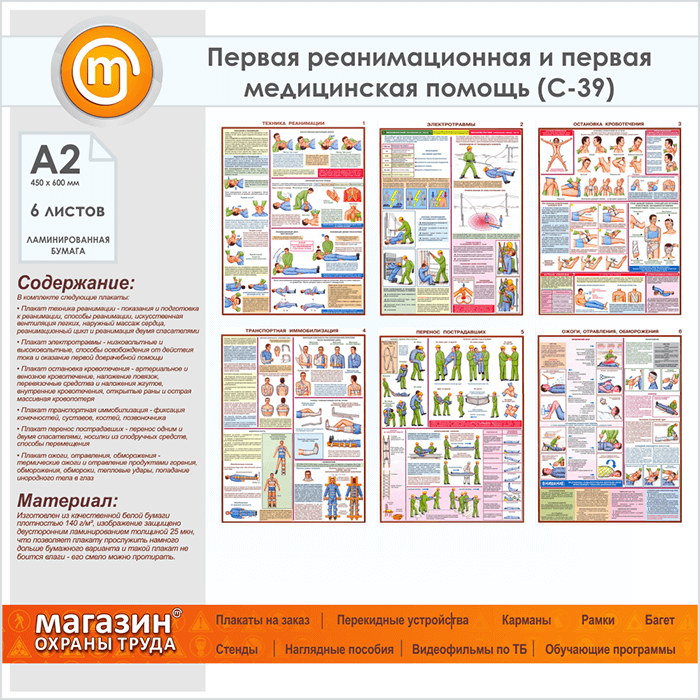 Плакат «Оказание первой помощи пострадавшим» (С-39, ламинированная бумага, А2, 6 листов) в Томске купить