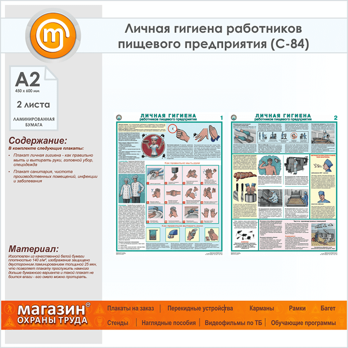 Плакаты «Личная гигиена работников пищевого предприятия» (С-84, ламинированная бумага, А2, 2 листа) в Томске купить