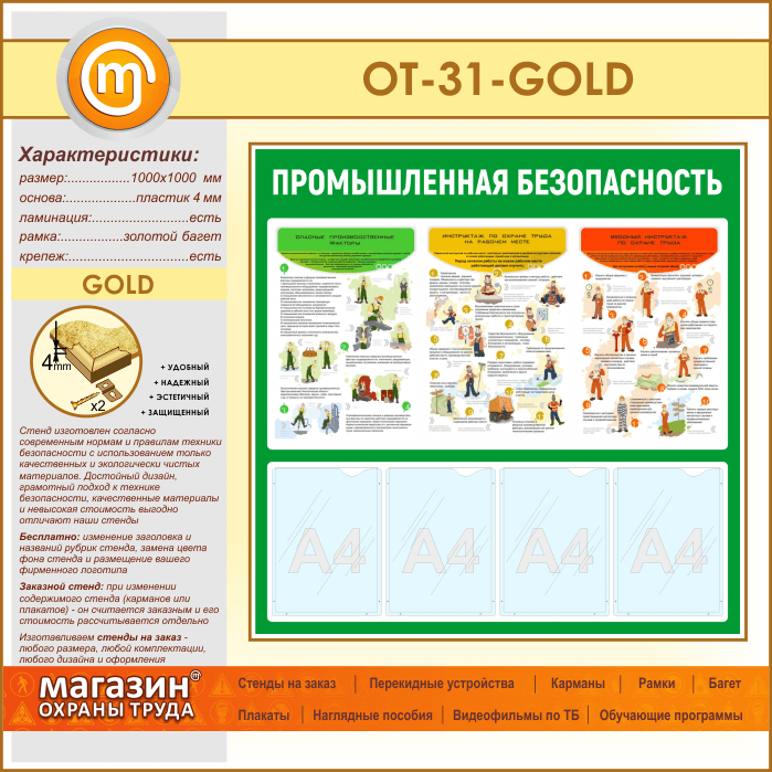 Стенд «Промышленная безопасность» с 4 карманами (OT-31-GOLD) в Томске купить