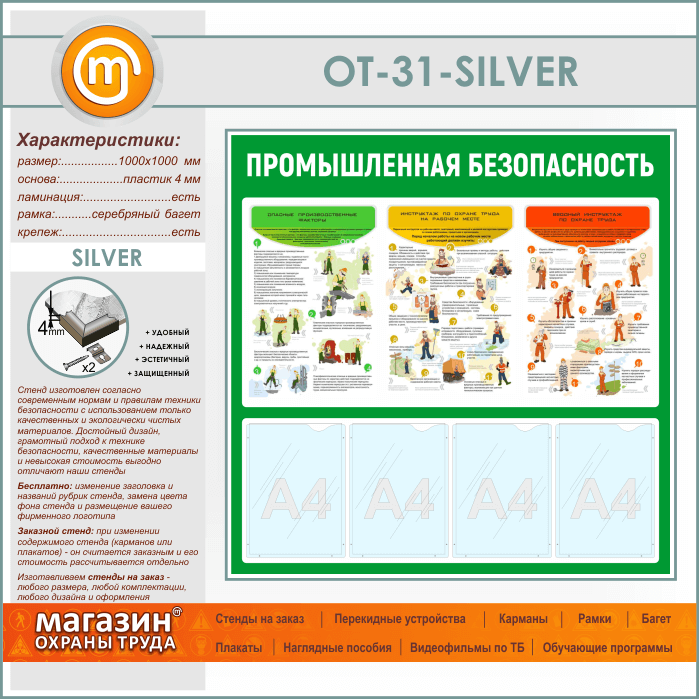 Стенд «Промышленная безопасность» с 4 карманами (OT-31-SILVER) в Томске купить