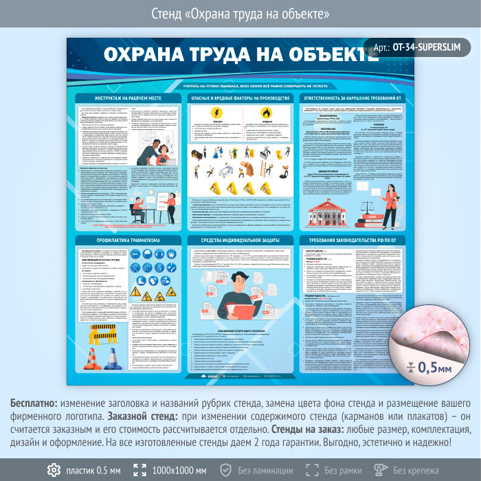 Стенд «Охрана труда на объекте» (OT-34-SUPERSLIM) в Томске купить