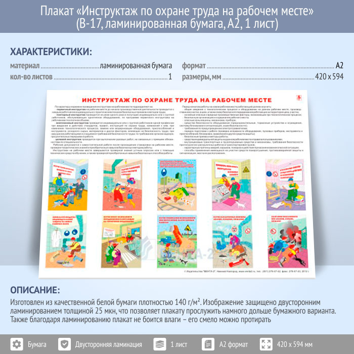Плакат «Инструктаж по охране труда на рабочем месте» (В-17, ламинированная бумага, А2, 1 лист) в Томске купить