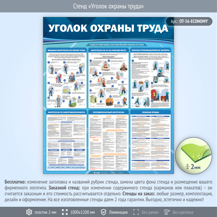 Стенд «Уголок охраны труда» (OT-36-ECONOMY) в Томске купить