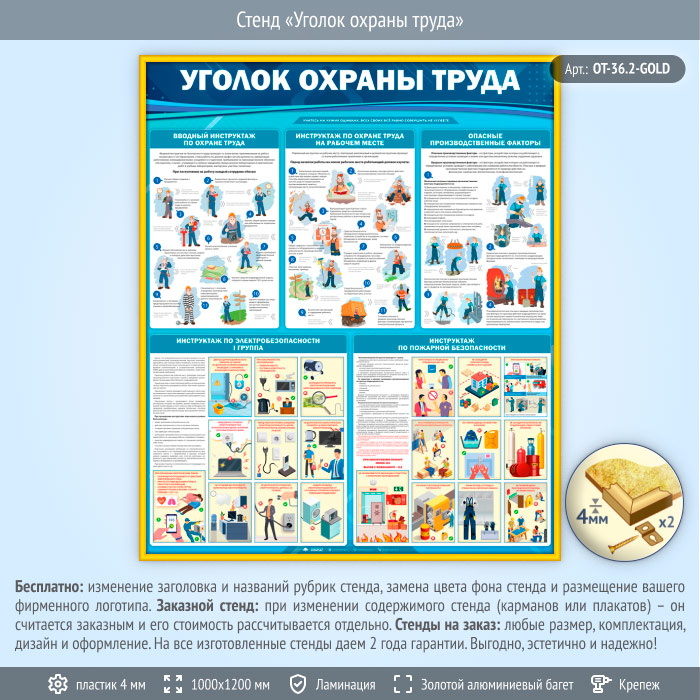 Стенд «Уголок охраны труда» (OT-36.2-GOLD) в Томске купить
