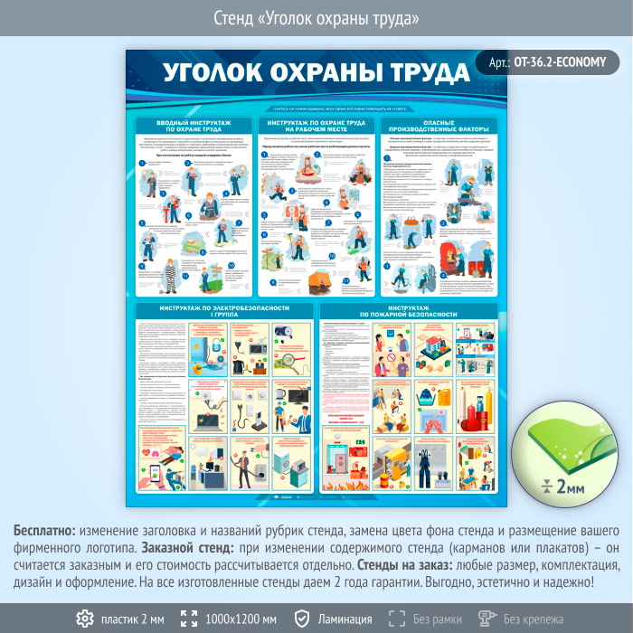 Стенд «Уголок охраны труда» (OT-36.2-ECONOMY) в Томске купить