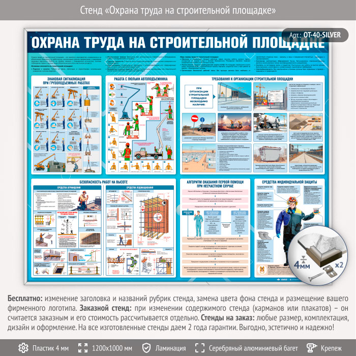 Стенд «Охрана труда на строительной площадке» (OT-40-SILVER) в Томске купить