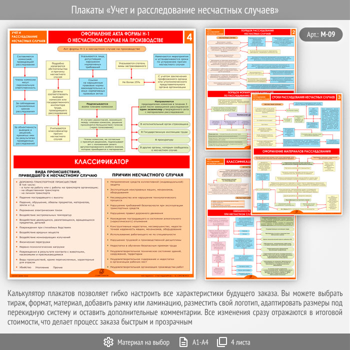 Плакаты «Учет и расследование несчастных случаев» (М-09, 4 листа) в Томске купить
