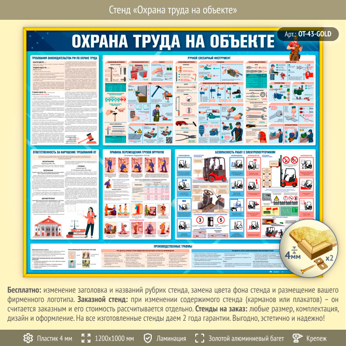 Стенд «Охрана труда на объекте» (OT-43-GOLD) в Томске купить