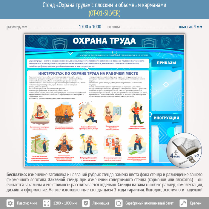 Стенд «Охрана труда» с плоским и объемным карманами (OT-01-SILVER) в Томске купить