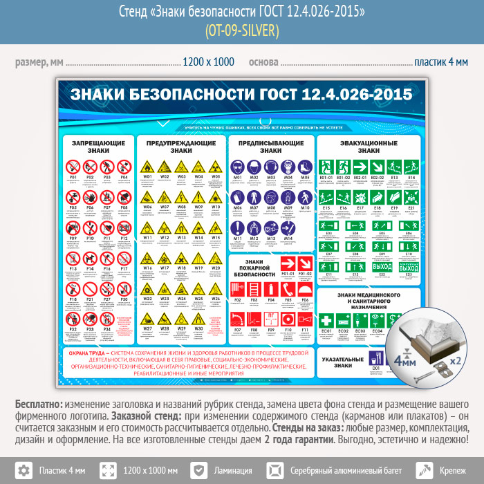 Стенд «Знаки безопасности ГОСТ 12.4.026-2015» (OT-09-SILVER) в Томске купить