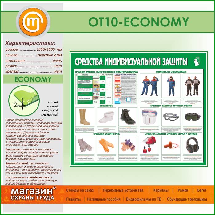Стенд «Средства индивидуальной защиты» (OT-10-ECONOMY) в Томске купить