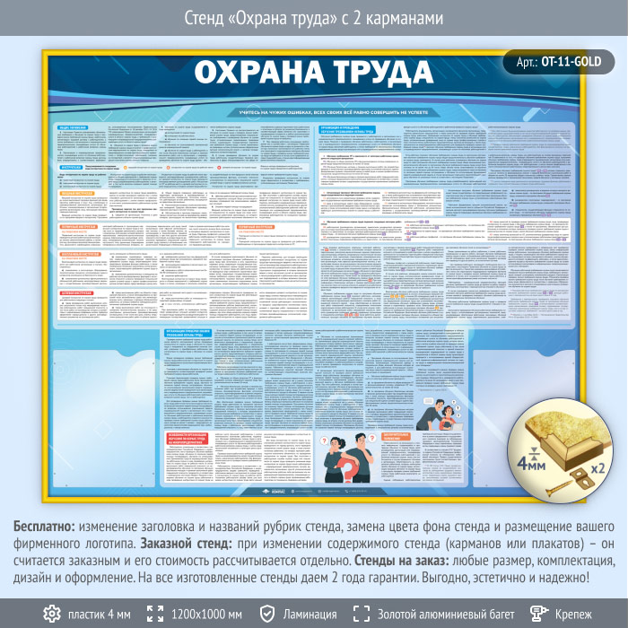 Стенд «Охрана труда» с 2 карманами (OT-11-GOLD) в Томске купить