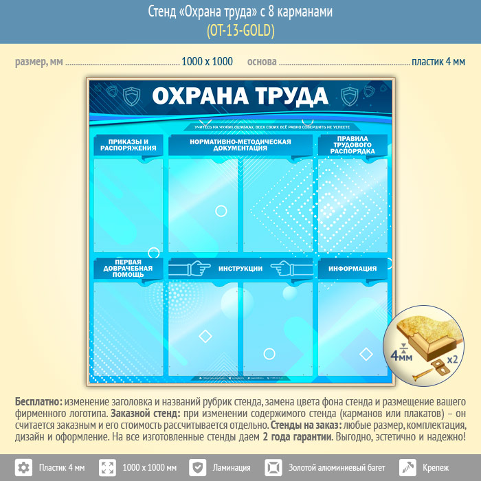 Стенд «Охрана труда» с 8 карманами (OT-13-GOLD) в Томске купить