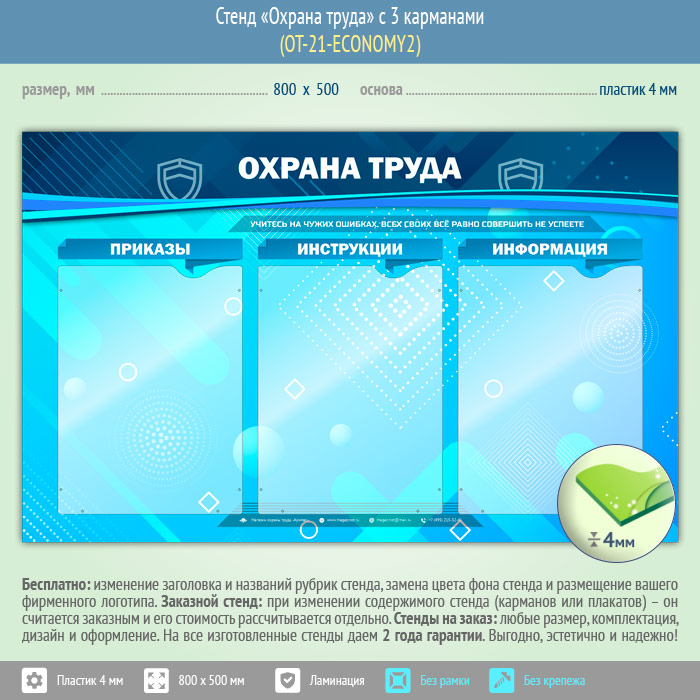 Стенд «Охрана труда» с 3 карманами (OT-21-ECONOMY2) в Томске купить