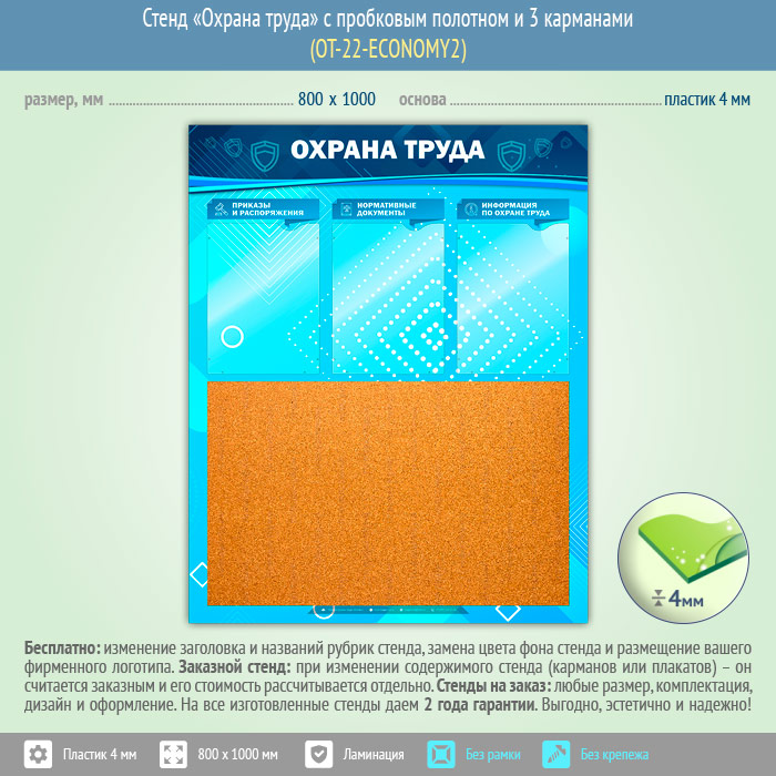 Стенд «Охрана труда» с пробковым полотном и 3 карманами (OT-22-ECONOMY2) в Томске купить